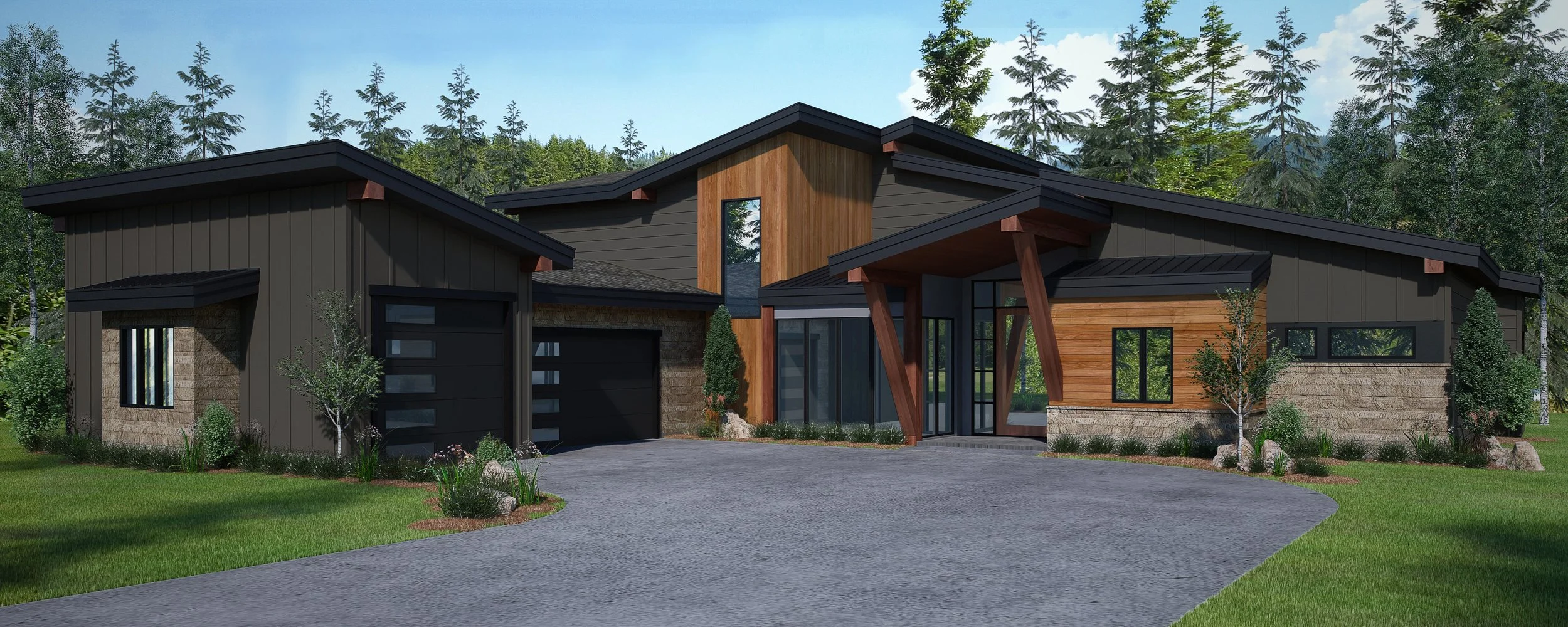 Tucked in the trees of Hayden, Idaho, Trail Ridge is the newest neighborhood Atlas is building in. With 5 large lots currently available and 3 unique home plans that can be built with RV garages or ADU (mother-in-law suite). These mountain modern homes are estimated to be a 6-8 month build and buyers will be able to choose their finishes.